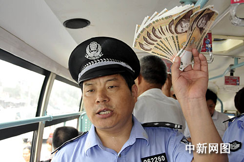 中新網(wǎng)商丘8月4日電 (記者 齊永 通訊員 白金中)買“法郎”便能保佑生個兒子,從而誘騙乘客購買被稱為“法郎”的秘魯幣,乘客稍有不從,便實施搶劫。日前,商丘——周口公路長途客車上6名男子正在上演這一出戲時,被便衣民警抓個正著。