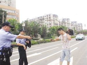 該男子出現(xiàn)之后,很快在附近人行橫道上就圍滿了群眾,大家都遠遠地站著,紛紛議論起來!安粫窃谂碾娪鞍?也沒有看到攝像機啊?”就在周圍群眾七嘴八舌地議論著的時候,幾輛警車呼嘯而至。