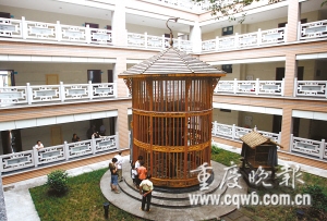 一個(gè)平常的鳥籠,二三十厘米高就足夠了。而萬州區(qū)三峽中心醫(yī)院平湖分院(又名三峽精神衛(wèi)生中心),最近建了一個(gè)7.5米高的鳥籠,100多只鳥居住在里邊。這些鳥兒住在這里的目的,竟是供精神病患者松弛神經(jīng)、陶冶性情,起間接治病的作用。