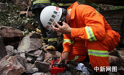 由于上萬方山石堆積,救援工作一直持續(xù)。為了確認(rèn)廢墟下是否有被困人員,紹興市消防支隊啟用了音頻生命探測儀,兩名特勤消防隊員冒著再次塌方的危險深入現(xiàn)場探測生命跡象,經(jīng)過半個多小時的現(xiàn)場探測,未發(fā)現(xiàn)有生命跡象。