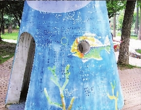 昨日有市民投訴稱(chēng),市青少年宮內(nèi)—處“趣味天地”的兒童游樂(lè)場(chǎng)“城堡”,被—些入視為“愛(ài)情宣言”之處,刻寫(xiě)得面目全非。
