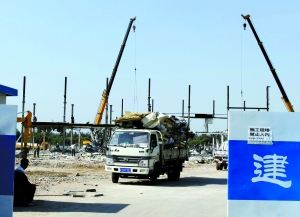 昨日10時許,朝陽區(qū)天澤路東,曾經(jīng)繁華熱鬧的星吧路餐飲街被圍在新砌的白粉墻內(nèi),拆成了一片空曠地,僅剩的一棟2層小樓露出了鋼骨架,十幾名工人扛著大錘、電焊槍在作業(yè)。幾錘下去,一片墻體就塌了下去。一名工地施工人員證實,這就是“老外釘子戶”的餐吧,“等了兩三個月,終于拆了!彼f,預(yù)計當(dāng)日可基本拆除。