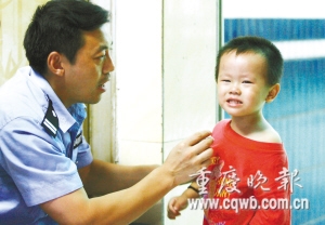 原來(lái)小男孩頭天迷路時(shí),民警問(wèn)他叫什么名,他不說(shuō),于是大家就干脆給他起了個(gè)“渝碚路”的小名,不料只要民警們一叫這名,他就笑呵呵的答應(yīng)了,于是大家都習(xí)慣地叫他“渝碚路”。