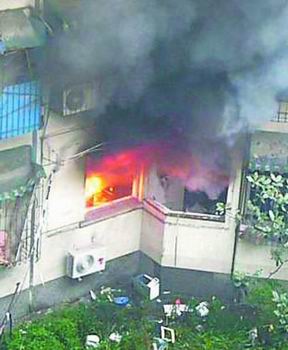 成都消防3、4中隊(duì)的消防車呼嘯趕來(lái)。因?yàn)檫^(guò)道太窄而且停滿了汽車,消防車進(jìn)不了大院,只得將水管從大門外拉進(jìn)起火的單元滅火。10多分鐘后,大火終于被撲滅。