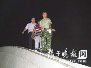 5日傍晚,一名年輕的陜西小伙,因?yàn)楣ぷ鞅晦o,情緒低落,居然喝了半斤白酒,爬上高達(dá)20多米的丹陽市云陽大橋拱頂準(zhǔn)備輕生。為此,300多名公安消防人員聯(lián)手展開3個(gè)多小時(shí)的水陸大營救。中山路派出所所長朱文俊帶著幾名警察和消防隊(duì)員冒著生命危險(xiǎn),爬到橋頂,并在危急時(shí)刻死死抱住該男子的雙腿,終于將該男子成功解救下來。昨日,該男子已被警方治安拘留。