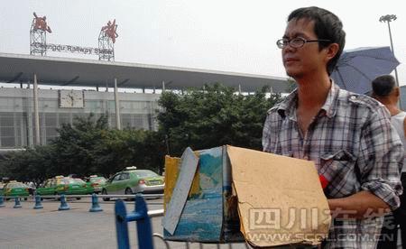 今年20歲的顧明軍來自涼山州會理縣一個小村莊,來成都半年,做電工的他沒有找到合適工作,就在一個小餐館打工。幾天前,家中來電話讓他回家。昨天早上9點半,顧明軍就到了火車北站,準(zhǔn)備買下午1點回老家的車票。買了票,顧明軍看見廣場上圍著一群人。“到底有啥子好看的?”顧明軍撥開人群,發(fā)現(xiàn)樹下躺著一個紙箱子,箱里有個盒子,上面有塊紅布!吧蹲?xùn)|西哦?”“骨灰盒,不曉得哪個掉了的!”“看到就晦氣,哪個愿意動它。”旁邊一位拿著掃帚的大姐說,8日晚上就有人發(fā)現(xiàn)這個骨灰盒躺在樹下,沒人敢動!肮腔液校俊鳖櫭鬈姲l(fā)現(xiàn)盒子已經(jīng)被人拆開,周圍粘滿了泥土!疤炷趿耍ナ篮缶谷贿@樣悲慘!鳖櫭鬈娮呱锨叭,撿起骨灰盒小心翼翼地放進紙箱,并蓋好了蓋子,“人死了,骨灰不能被風(fēng)吹掉。”顧明軍開始查看骨灰盒,試圖找到聯(lián)系方式,但除了外包裝上有“歐式別居”4個手寫的字外,沒有任何線索。