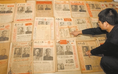 “國慶方面各類報紙就有2噸,多從要搬家的機(jī)關(guān)事業(yè)單位,或者廢品收購站購來的!睏钕栾w說,收藏國慶報道的報紙,他花了13萬元左右。