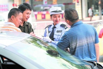 如同網上視頻一樣,交警MM對每位司機都是微笑著先敬禮、然后再開單、處罰,被處罰的司機們看上去心服口服,居然也都掛著微笑。