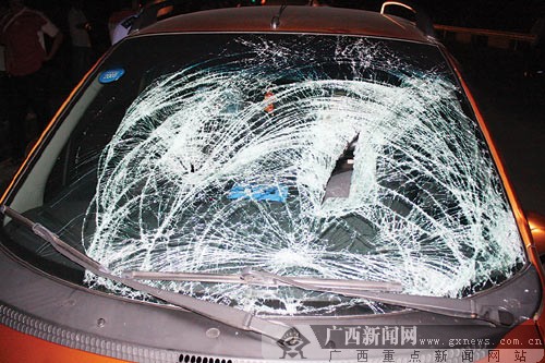 在羅城交警大隊事故中隊的電腦上,記者看到了事故圖片,肇事車的擋風玻璃已經(jīng)支離破碎,上面的一個大洞清晰可見。據(jù)辦案民警介紹,其中一名死者的頭部直接撞擊在玻璃上,造成顱骨骨折身亡。
