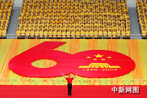 據(jù)了解,為達到整體效果的統(tǒng)一,現(xiàn)場衣服除小學生方陣是穿校服,軍人、公安穿軍服警服以外,其他演職人員各穿紅、黃、藍色T恤,以表現(xiàn)不同寓意。(完)