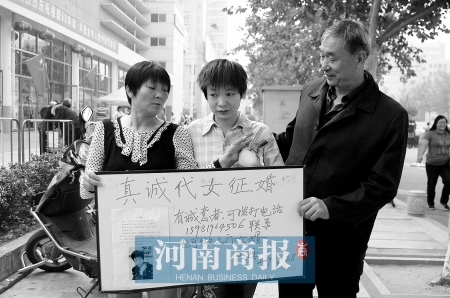 昨日,鄭州鬧市區(qū)內(nèi)出現(xiàn)一對(duì)父母“真誠代女征婚”。