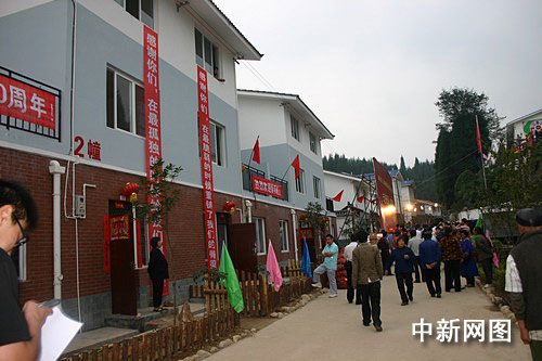 9月28日晚,當?shù)嘏e行了“遷新居•迎國慶”5.12大地震失地群眾異地安置聯(lián)歡晚會,南寶山的新主人們穿上盛裝,點燃篝火,跳起歡快的鍋莊,祝福祖國60歲生日。