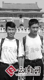 用了近半年時(shí)間,行程達(dá)萬余里,從云南臨滄市云縣徒步啟程,途經(jīng)廣西、湖南等7省(區(qū)),最終趕在新中國60歲生日前順利到達(dá)首都北京。從今年3月開始,云縣的楊世和及兒子楊澤泳,帶著家鄉(xiāng)人對祖國的祝福,以“徒步”的獨(dú)特方式喜迎新中國成立60周年。