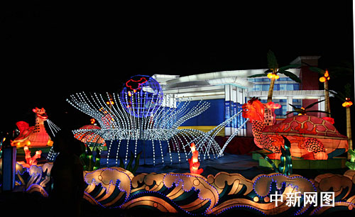 中新網?10月1日電(付美斌)1日晚上8 時,海南?谑腥f綠園人潮涌動,燈火輝煌、流光溢彩,海南省慶祝新中國成立60周年大型主題彩燈展今晚正式亮燈開展。整個燈展設七大板塊共60個燈組,展為期一個月。