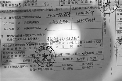 在261醫(yī)院的記錄單上寫著,患者于3點(diǎn)55分入院,跟隨人員向搶救人員訴說,40分鐘前,患者因上消化道大出血,導(dǎo)致呼吸、心跳驟停,經(jīng)過心肺復(fù)蘇等救治后恢復(fù)心跳和呼吸。雖然搶救人員全力救治,祁長江在凌晨4點(diǎn)半左右被宣布死亡。