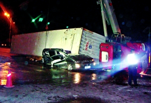 昨日凌晨2時15分許,順義區(qū)通順路米各莊路口,一輛集裝箱式大貨車與一輛商務(wù)轎車相撞后側(cè)翻,將轎車壓在貨箱下。事故導(dǎo)致轎車中6名乘客死亡,1名乘客受傷。目前,市政府、市公安局等已介入調(diào)查。