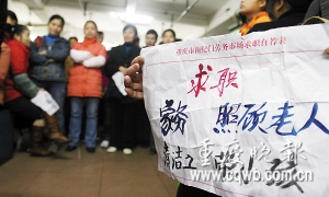 昨下午,記者來(lái)到位于渝中區(qū)解放西路的南紀(jì)門(mén)勞務(wù)市場(chǎng),打探保姆行情。一走到女工區(qū),立刻有三四個(gè)中年婦女圍了過(guò)來(lái),詢(xún)問(wèn)是否需要保姆。一聽(tīng)是照顧兩個(gè)80多歲的老人,幾個(gè)人連連搖頭,轉(zhuǎn)身就走。