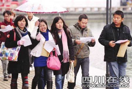 “喝著鹽水聊天!喝著鹽水聊天!有沒(méi)有人接暗號(hào)。俊薄罢f(shuō)話凈閑(咸)扯!終于找到你們了!弊蛉障挛3點(diǎn),成都高新區(qū)大型公益單身青年聯(lián)誼會(huì)在有趣的拓展訓(xùn)練中拉開(kāi)帷幕。盡管是周末,但高新區(qū)孵化園露天中心廣場(chǎng)卻人頭攢動(dòng),好不熱鬧。三人一組的單身白領(lǐng)冒著冬雨,頂著寒風(fēng),站在現(xiàn)代化的樓宇間,口里齊聲喊著一些奇怪的詞組。原來(lái),現(xiàn)場(chǎng)趕來(lái)的600多名單身青年們隨機(jī)分成了若干小組,正在參加moving&meeting(找朋友)的拓展游戲。通過(guò)地圖找到指定地點(diǎn),喊著接頭暗號(hào),兩個(gè)陌生的小組重新組成一個(gè)大組,然后進(jìn)行新一moving&meeting(找朋友)游戲。最終8個(gè)三人小組組成了一個(gè)團(tuán)隊(duì),原本陌生的24個(gè)人在游戲中相互認(rèn)識(shí)、一起完成游戲任務(wù)。隨即,團(tuán)隊(duì)間進(jìn)行了“幸福團(tuán)團(tuán)轉(zhuǎn)”、“迎接新娘”等趣味游戲。