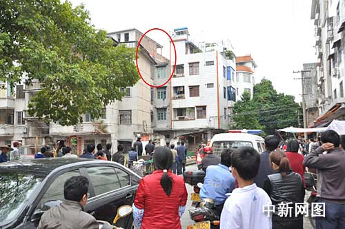 現場群眾說,該男子大概是中午12點左右上到樓頂,剛開始還以為是宿舍樓的住客,后來看到男子坐在樓頂邊緣將手機、錢包還有一張紙條丟到樓下馬路。