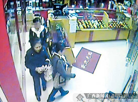 11月18日晚8時許,南寧市濱湖路一經(jīng)營煙酒生意的店鋪發(fā)生盜竊事件,店中收銀臺8500元現(xiàn)金被人當(dāng)場偷走了。竊賊是兩名婦女,她們的作案過程被店里的監(jiān)控錄像一一拍了下來。