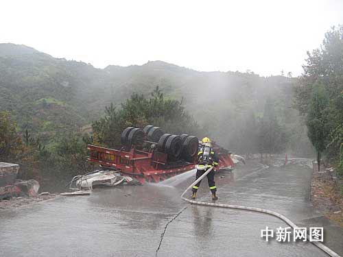見(jiàn)此情況后,中隊(duì)指揮員對(duì)事故現(xiàn)場(chǎng)立即進(jìn)行警戒,出兩支水槍進(jìn)行稀釋。樂(lè)清市政府得悉情況后,立即起動(dòng)應(yīng)急預(yù)案,并調(diào)集公安、安監(jiān)、環(huán)保、交通、路政等相關(guān)部門(mén)趕赴現(xiàn)場(chǎng)處置。