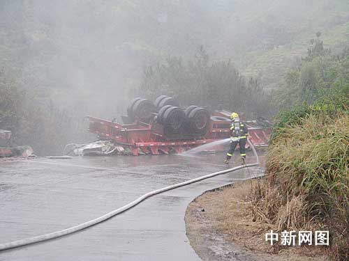 中新網(wǎng)溫州11月20日電(記者 江耘 通訊員 徐行號(hào))11月20日早晨6時(shí)許,浙江樂(lè)清市樂(lè)成鎮(zhèn)往白石鎮(zhèn)方向的盤(pán)山公路轉(zhuǎn)彎處一輛載有15噸的鹽酸的半掛車(chē)發(fā)生側(cè)翻泄漏事故。