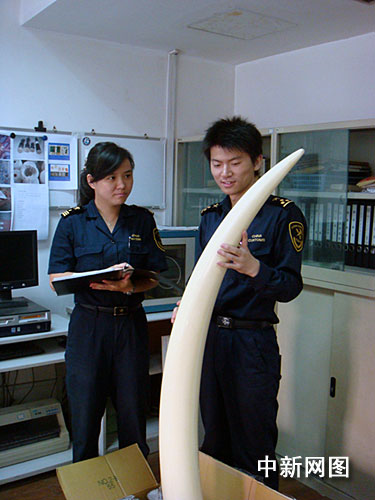 據透露,2009年10月26日,上海海關駐郵局辦事處關員小郭依照慣例對進口郵件的申報單進行審核。審單過程中,一件由日本郵寄進境、申報內容為“非洲特色裝飾品,工藝品”的單子引起了她的注意。原來今年6月,海關就曾查獲一批由烏拉圭進境的象牙雕刻制品,其收件地址與這票貨物完全相同!小郭于是立即對可疑郵包進行了機檢。X光機下,關員觀察到一個類似象牙弧形狀的深色物體,打開扁長方形的盒狀包裹,關員發(fā)現里面塞有大量的報紙,報紙堆中藏有一根通體玉白,實心、表面微亮、未經雕琢的象牙。