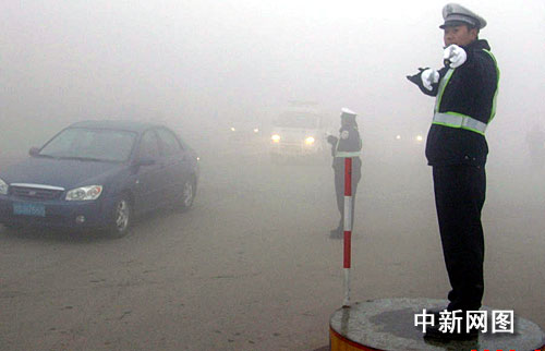 中新網(wǎng)新鄉(xiāng)11月26日電(記者吳揚(yáng) 通訊員牛國(guó)平)昨日一場(chǎng)入冬以來(lái)最大的濃霧突降中原大地,河南省新鄉(xiāng)市交巡警支隊(duì)及時(shí)啟動(dòng)惡劣天氣下的交通安全管理預(yù)案,全市千余名交警冒著濃濃大霧迅速出警,守護(hù)在市區(qū)和主干公路的大路口上,指揮和疏導(dǎo)了數(shù)萬(wàn)輛過(guò)境機(jī)動(dòng)車輛安全通行。