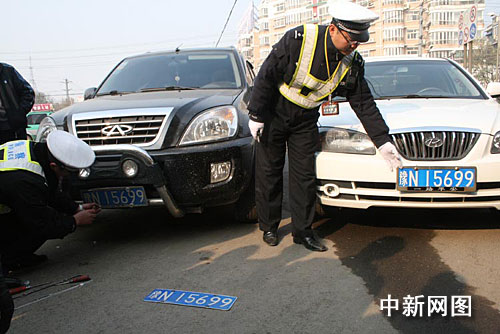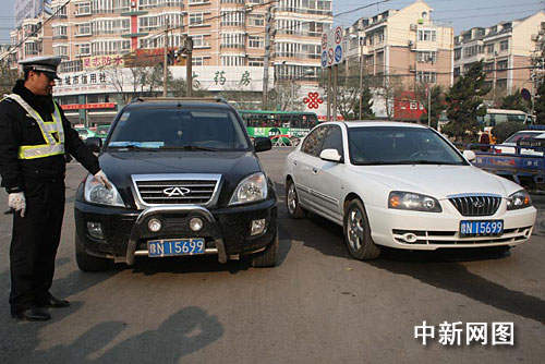 當(dāng)日上午9時10分,正在文化路崗執(zhí)勤的交警二大隊民警李磊看到一中年人急匆匆向他跑來,“民警同志,快攔住這輛等紅燈的奇瑞車,它掛的牌照和我的一樣,是一輛套牌車!泵窬(dāng)事人的手指的方向望去,果然見一前一后停著兩輛轎車,前車是一輛黑色奇瑞,后面是一輛白色現(xiàn)代,而兩車的號牌都是予N15699。