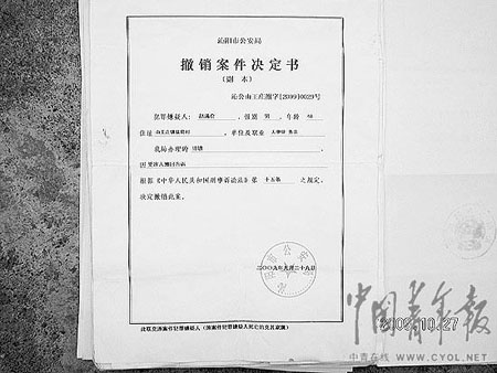 9月3日晚,張小傳、趙有福拿著“沁陽市看守所釋放證明”回到家中。至此,張、趙二人在沁陽市看守所關(guān)押了518天。記者在張小傳得到的“沁看釋字【2009】214號”沁陽市看守所“釋放證明”上看到,放他出來的原因是“取保候?qū)彙薄?