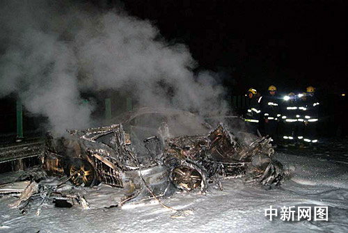 隨后,經(jīng)過(guò)消防官兵近20分鐘的奮力撲救,大火被成功撲滅,后經(jīng)官兵們仔細(xì)偵查后發(fā)現(xiàn),在奔馳轎車(chē)的駕駛室與車(chē)后座各有一人,但都已喪生火海。