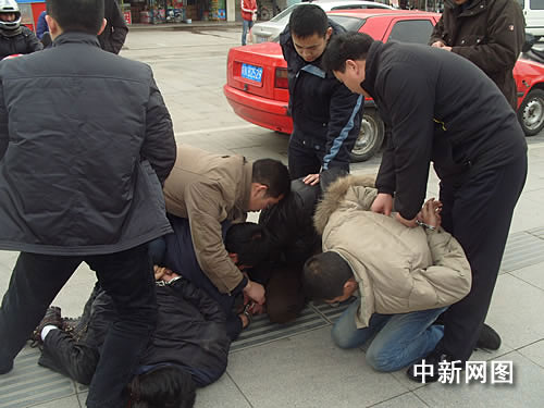 就在4名男子上車(chē)準(zhǔn)備發(fā)動(dòng)轎車(chē)的一剎那,5名民警突然猶如下山的猛虎,突然出現(xiàn)在可疑車(chē)輛兩側(cè),猛然打開(kāi)車(chē)門(mén),在逃犯剛明白的時(shí)候,他們已經(jīng)被民警拽到車(chē)外,按倒在地。“有兩個(gè)人還拼命反抗,不讓我們上銬子,我們告訴他們是警察,幾個(gè)人就老實(shí)了!”整個(gè)抓捕過(guò)程也就兩三分鐘時(shí)間,當(dāng)路過(guò)的市民明白過(guò)來(lái),情不自禁地為民警鼓起了掌。
