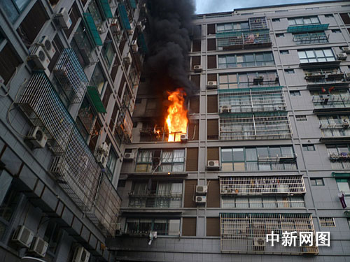 3分鐘后,消防官兵最先到達(dá)了現(xiàn)場(chǎng)。起火點(diǎn)位于6樓618室,整個(gè)房間已全部起火,火勢(shì)已處于猛烈燃燒階段,臨窗部分火焰已向外竄出向著四周蔓延,燃燒產(chǎn)生的濃煙充斥著整個(gè)樓道。在大樓的另一面,6樓、7樓部分住戶打開窗戶上向外呼救。