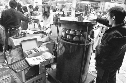 這家攤點(diǎn)的負(fù)責(zé)人李先生說,他們的烤薯攤點(diǎn)是連鎖店,“這種連鎖攤點(diǎn)在成都有10多個,還有至少5家連鎖店面。在北京、上海、綿陽等地還有分店!彼f,連鎖店老板是個臺灣人,使用的是從臺灣引進(jìn)的烤薯方法,比成都市場上的烤薯技術(shù)都要先進(jìn)。李先生拉開烤薯箱,里面擺有幾十個紅薯,還有個圓形的溫度計!斑@是專門在臺灣訂制的!