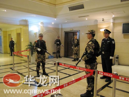 記者在法院現(xiàn)場看到,此次庭審安檢非常嚴格,總共有三道防線。第一道在在法院周邊50米左右,有交警戒嚴,社會車輛一律不得進入。第二道在法院樓下,已拉起警戒線,旁聽群眾、記者、律師等必須持有旁聽證或相關(guān)證件才能入內(nèi)。第三道線在進入法院時,所有人員必須接受安檢,手提包全部寄存,手機、筆記本、相機等隨身物品均不得帶入法庭內(nèi)。法院大門外和法庭門外均有特警持槍站崗,進入法院大樓內(nèi)手機信號將會被屏蔽。