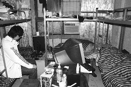楊華是福建泉州人,兩年前從廈門大學(xué)畢業(yè),在當(dāng)?shù)匾凰鶎W(xué)校當(dāng)老師!跋胗幸环蟮淖鳛椤!苯衲瓿,他辭職上北京闖蕩,遇到很多挫折又來到了重慶。他說,剛到重慶時(shí)身上只有1000元,而這1000元還是信用卡透支的。找到這種出租床位的公寓,就立刻住下了!白≡诶锩娴亩际遣畈欢嗑秤龅男值!睏钊A說,工作的地方就在405車站對(duì)面,幫人家做廣告,收入不固定!斑\(yùn)氣不好的話一個(gè)月1000!彼懔艘还P賬,每月房費(fèi)260、飯錢600,身上幾乎不剩錢?斓街形绲臅r(shí)候,楊華出去了一會(huì),在樓下端上來一碗小面,3塊錢。他說,有時(shí)候會(huì)很茫然,不知道未來在哪里。鄭偉是楊華的房東,他說自己也曾是北漂,知道這些大學(xué)生的不易!艾F(xiàn)在租床位的大學(xué)畢業(yè)生越來越多了!彼f,商圈周圍很多家這種出租床位的,都是針對(duì)找工作的大學(xué)生。在他這里租床位的畢業(yè)生,基本都在觀音橋商圈上班。“做銷售跑業(yè)務(wù)的居多,一月也就千把塊!编崅u搖頭感嘆。記者 談書 實(shí)習(xí)生 蔡力