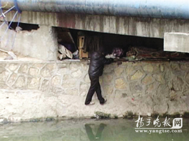 據(jù)了解,該落水男子是安徽人,在南京已經(jīng)好幾年了,平時靠打零工和收舊維持生活。記者在現(xiàn)場看到,他住的橋洞內(nèi)還住有其他民工,橋洞下塞了一排被褥。據(jù)周圍居民說,老人落水時,他們都在組織救人,而橋洞內(nèi)兩個年輕人還在呼呼大睡,再詢問兩年輕人時,兩人一臉茫然。他們睡的地方實際上是河道坡面上的一塊平臺,空間極其狹窄。由于兩邊設(shè)有鐵柵欄,禁止人翻越的,但是他們進出橋洞只能翻越柵欄順著坡面爬到橋洞內(nèi),稍有不慎就會墜入河中。(本報記者 任國勇 文/圖)