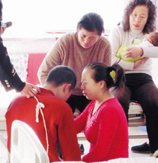 在沈北新區(qū)醫(yī)院婦產(chǎn)科的病房內(nèi),關(guān)某一見到母親、妻子和孩子,就跪在了地上淚如雨下,他的妻子也跪在他身旁,“你好好改造,我會好好照顧孩子,我不會和你離婚的!你把人家撞死了,給人家家庭帶來多大的傷害啊!我還能看見你,可是人家孩子卻看不著媽了!你好好改造吧,不用惦記我們!”關(guān)某的妻子安慰著丈夫。關(guān)某的母親一直邊哭邊捶打著兒子,“家里只有兒子還能賺些錢,現(xiàn)在他進(jìn)監(jiān)獄了,家里怎么辦?孫子和兒媳婦怎么辦?”