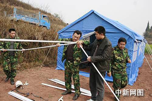中新網(wǎng)遂寧安居1月31日電(霍潺 劉賢 吳晟偉 徐千舟) 本網(wǎng)記者在四川遂寧市地震現(xiàn)場了解到,目前相關(guān)部門正在加緊為受災(zāi)民眾搭建臨時安置帳篷。