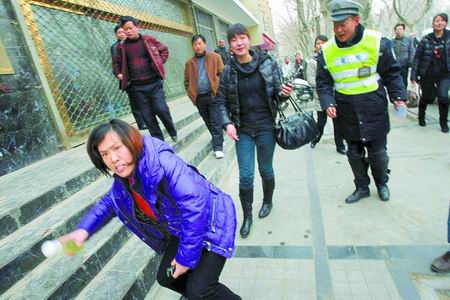 3分鐘后,交警二大隊(duì)民警趕到。在對違法司機(jī)進(jìn)行處罰時(shí),民警發(fā)現(xiàn)司機(jī)宿輝所駕駛的轎車,登記的是南陽市社旗縣晉莊鎮(zhèn)紀(jì)律檢查委員會(huì)所屬車輛。記者拍照時(shí),遭到一名短發(fā)女子阻攔。隨后,又有兩名黑衣女子上前,開始搶奪本報(bào)攝影記者閆化莊的相機(jī),并當(dāng)街追打閆化莊,將他的手背抓爛。整個(gè)過程持續(xù)了十分鐘,一名DV觀察員拍攝追打過程時(shí),也遭到了這三名女子的圍攻和撕扯,在場交警上前制止,其中兩名女子又沖過來毆打記者。先期離開的特巡警趕來制止,三名女子仍不愿罷手。