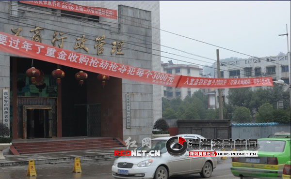 2月7日下午,記者聯(lián)系了張家界南莊坪辦事處,分管政法工作的張副主任和一位彭姓工作人員介紹,標(biāo)語確實是他們掛的,“我們區(qū)里面(永定區(qū)政法委)對抓獲兩搶一盜的都有獎勵,抓獲一個分別為5000元和1000元,而辦事處為了更大程度上獎勵見義勇為者,分別在相應(yīng)基礎(chǔ)上增加獎勵3000元和1000元,前段時間有人抓獲兩個搶劫犯的,都有兌現(xiàn)了,在開始‘冬季嚴打’活動以來就掛出這個標(biāo)語了!”