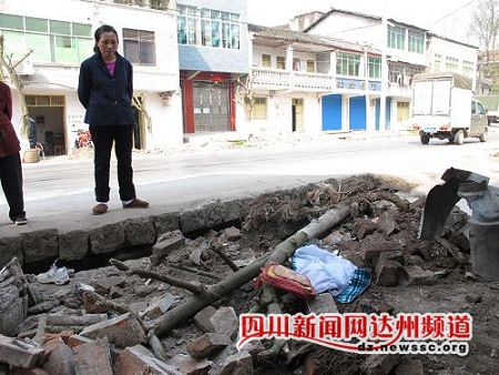 記者在事發(fā)地點看見還遺留有學生的書包、鞋子、衣服和撞碎的汽車部件,不遠處還留有血跡,花臺里一棵槐樹被撞倒在地。