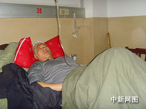 3月22日下午1時(shí)40分許,記者在阜陽(yáng)市人民醫(yī)院急救中心二樓病房里,見(jiàn)到了肇事司機(jī)董飛,他躺在病床上,旁邊坐著一女子與其聊天。當(dāng)發(fā)現(xiàn)有記者前來(lái)采訪(fǎng)拍照,該女子迅速離開(kāi),面對(duì)記者董飛一直不開(kāi)口說(shuō)話(huà)。隨后,病房?jī)?nèi)看守董飛的兩名警察阻止了記者采訪(fǎng)。