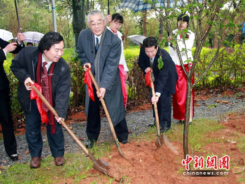 中新網(wǎng)長沙4月14日電(鄧霞 劉柱)冒著瀟瀟春雨,10來名日本友人今天專程來到湖南涉外人員培訓(xùn)中心中日友好櫻花園,為這里新植的700株櫻花樹苗添土。據(jù)介紹,該櫻花園由日本育櫻會(huì)捐資興建。