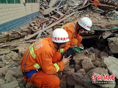 17日,按照四川省消防總隊高雨祥總隊長的現(xiàn)場指揮和部署,全省300多名官兵分成4個中隊80多個救援小組,以結(jié)古鎮(zhèn)為中心向各街道、鄉(xiāng)鎮(zhèn)蔓延,入鄉(xiāng)進(jìn)村,仔細(xì)搜索被困群眾。