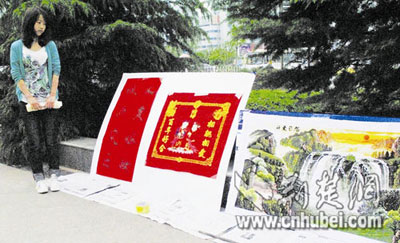 4月22日下午,在武漢光谷廣場(chǎng)的空地上,一名擺攤賣(mài)十字繡的美女大學(xué)生引起路人的關(guān)注。她在吆喝賣(mài)她的嫁妝,理由是為玉樹(shù)災(zāi)區(qū)獻(xiàn)愛(ài)心,不過(guò)一幅十字繡堅(jiān)持賣(mài)3.8萬(wàn)元,讓感興趣的人聽(tīng)完直感慨,“這也太貴了吧!