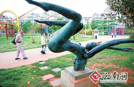 “大剪子是干什么的,鐵工廠丟棄的爛機(jī)器怎么丟在公園內(nèi)?黑色的大熨斗怎么丟在水里?裸體女性仰面朝天、垃圾堆里婦人拎包等等。這是代表什么?像這樣的雕塑放在公園里,有傷風(fēng)化,這對(duì)提升市民文化品位毫無益處,降低了昆明人的藝術(shù)標(biāo)準(zhǔn),還是早撤為好。”日前,昆明市有關(guān)部門接到市民吳先生等人的反映。