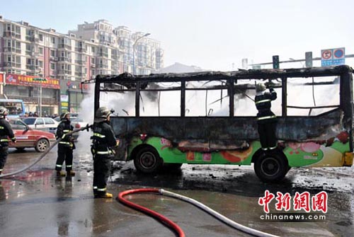 事發(fā)時車上大約有20多名乘客,所幸全部安全逃生。消防部門接到報警后,派出兩輛消防車趕到現(xiàn)場。大約30分鐘后,大火被撲滅,但車已被燒成空架。