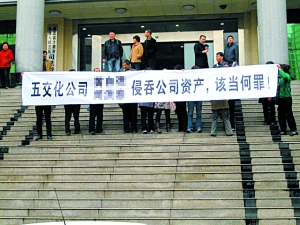 近30名十堰市原五交化有限公司下崗職工,從報(bào)紙上得知,省里下來的巡視小組住在宏正酒店,便于4月9日上午聚集在宏正酒店門口,打出橫幅反映公司改制國(guó)資流失和原單位領(lǐng)導(dǎo)涉嫌腐敗問題。