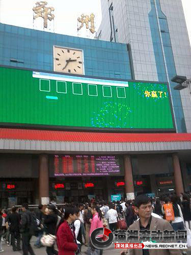 5月16日下午兩點(diǎn)10分左右,鄭州火車(chē)站戶(hù)外電子屏上意外“上演”紙牌游戲,引起不少人圍觀拍照。